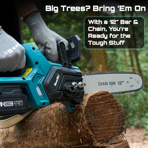 Efficiënte kettingzaag met veiligheid: deze kettingzaag is zorgvuldig ontwikkeld om te voorkomen dat iemand te zwaar is om de zaag te bedienen. Je zult je na een lang werk nooit moe voelen. Jouw veiligheid is onze hoogste prioriteit. De SeeSii 12 inch accu-kettingzaag is uitgerust met een uitgebreide reeks veiligheidsfuncties en beschermingsmechanismen die veilig zagen. Werk met onwankelbaar vertrouwen, want je weet dat onze kettingzaag je beschermschild is.